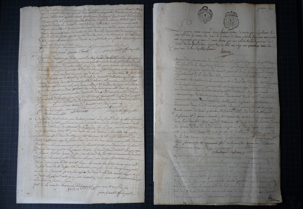Neufs ou anciens, les registres publics sont réalisés "à la main" dans le respect du cahier des charges des Archives Nationales de France (2009) dont vous trouverez les points principaux ci-dessous :