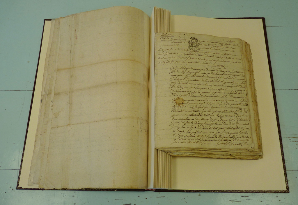 - Est-ce pour un registre neuf ou ancien ? Afin de mieux évaluer le travail de restauration , je me déplace systématique pour les registres anciens.